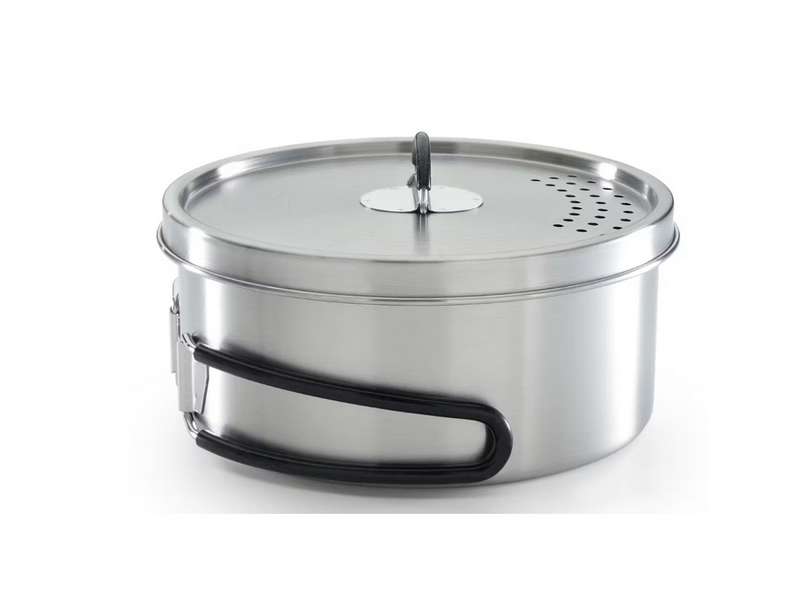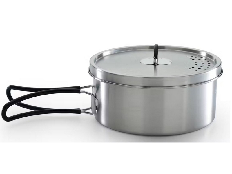 Neem de perfecte kookaccessoires mee tijdens het kamperen! Deze eenvoudig mee te nemen koekenpan en pan zijn van roestvrij staal, hebben siliconen handgrepen en maken koken op de camping gemakkelijker dan ooit.