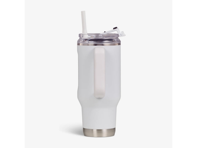 Bijvullen. Verversen. Herhalen. We hebben een (vrijwel) bodemloze hoeveelheid intuïtieve, gebruiksvriendelijke designelementen in deze grote roestvrijstalen mok gestopt, perfect voor onderweg: lekvrije deksel, drinkindicator zonder te kijken, ingebouwde onderzetter, makkelijk omdraaien en drinken, lekvrij rietje... en zo kunnen we nog wel even doorgaan. Met een inhoud van 950 ml is deze krachtige, herbruikbare beker ideaal voor een extra grote sapmix, ijskoud water of een warme kop koffie.