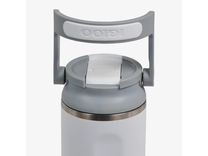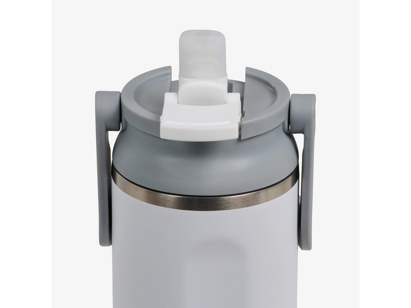 Opklapbare Tuck Tight™-handgreep (geïntegreerd in het deksel) met zachte grip voor gemakkelijk en comfortabel dragen; klapt naar beneden wanneer niet in gebruik, zodat hij plat tegen de fles aanligt en niet in de weg zit.