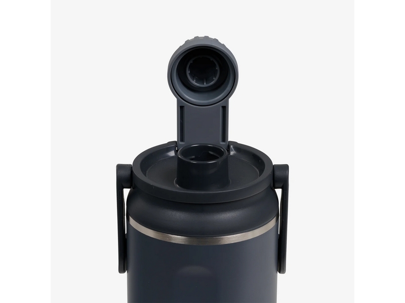 Opklapbare Tuck Tight™-handgreep (geïntegreerd in het deksel) met zachte grip voor gemakkelijk en comfortabel dragen; klapt naar beneden wanneer niet in gebruik, zodat hij plat tegen de fles aanligt en niet in de weg zit.