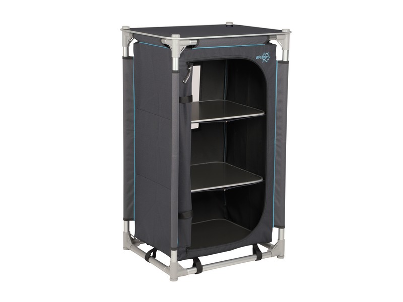 Beschrijving Een luxe en zeer stabiele legkast. Deze kast beschikt over 3 stevige legplanken en 2 zijvakken. Voorzien van een luxe 2-tone 600 denier polyester hoes en een oplegblad. De verstelbare poten zijn afzonderlijk af te stellen zodat de legkast op iedere ondergrond stabiel staat. Wordt geleverd in een draagtas.