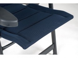 Een zeer luxe standenstoel. Deze stoel biedt maximaal comfort door de in 7 standen verstelbare rugleuning en de gepolsterde 3D stof. De comfortabele vulling van deze stof is extra luchtdoorlatend en houdt door de open celstructuur geen vocht vast. Hierdoor is de stoel veel sneller droog dan stoelen met een traditionele schuimvulling. Daarnaast zijn zowel de rugleuning, de zitting en de armleggers ergonomisch gevormd. De stoel is voorzien van een geanodiseerd H-frame voor extra stabiliteit en stevigheid. De stoel heeft een brede (50 cm) en een diepe (43 cm) zit. Een zittinghoogte van 48 cm en een ruglengte van 81 cm. Ingeklapt is deze stoel zeer compact en daardoor gemakkelijk mee te nemen (lxbxh: 113x67x7,5 cm). Maximale belasting: 140 kilogram.