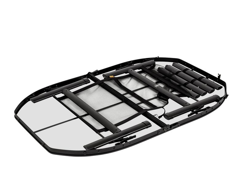 Compact als koffermodel op te bergen door de verstelbare poten en een deelbaar blad.