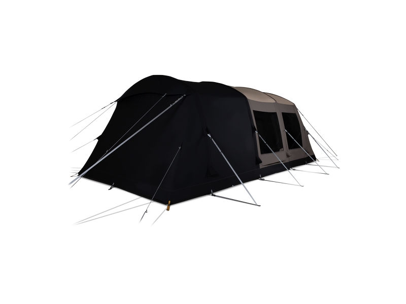 Een retro-geïnspireerde metgezel voor avonturen in de natuur. biedt schuilplaats voor vier personen. Het is gemaakt van technisch polykatoen, heeft opblaasbare buizen en een geïntegreerde luifel voor al je spullen. Grote ramen, een tunnel met stahoogte en een zij-ingang maken het een comfortabele basis voor verhalen onder de sterren.