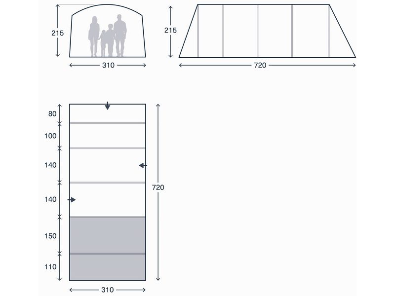 WIDTH 310 LENGTH 720 HEIGHT 215 (CM)
