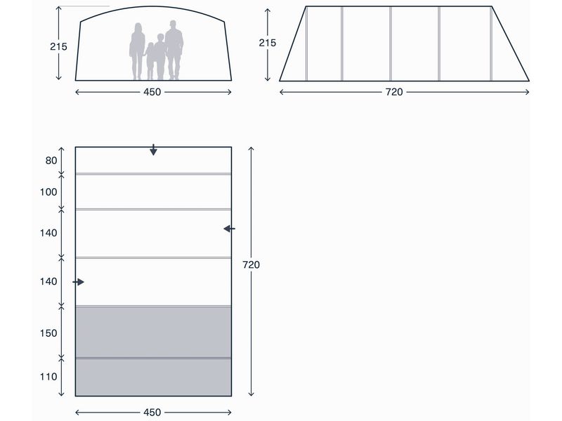 Gemaakt voor roadtrips en overnachtingen onder de sterrenhemel. Wordt dit uw prachtige 6 persoons tent. De opblaasbare buisconstructie zorgt voor een snelle opzet en meer tijd om de omgeving te verkennen. Gemaakt van 150D polyesterstof, Deze tunneltent heeft stahoogte en meerdere ingangen. Is dit jouw ruime toevluchtsoord voor het volgende hoofdstuk van je avontuur.