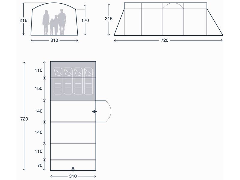 WIDTH 310 LENGTH 720 HEIGHT 215 (CM)