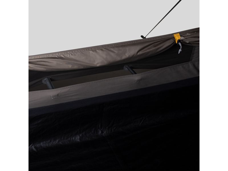Gemaakt van technisch katoen-polyester, een prachtige tent voor 6 personen. Dankzij de opblaasbare buizen is de tent snel op te zetten en de geïntegreerde veranda biedt ruimte voor spullen en gezelligheid.