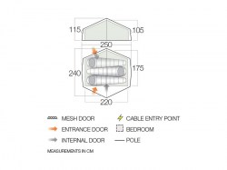 Gepatenteerd Vango TBS® - Tension Band systeem zorgt dat de tent blijft staan bij harde wind. De banden ondersteunen de stokken op 3 plaatsen en voorkomen zijwaartse beweging. Span niet strakker af dan nodig, omdat de stokken anders kromtrekken. Kan bij rustig weer worden opgeborgen.