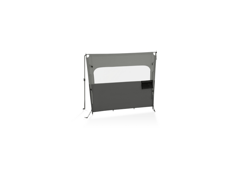 Het windscherm met tentstokken is de perfecte aanvulling op je voortent. Snel te installeren en ondersteund met verstelbare ondersteuningsstangen. Het frame ervan is volledig van aluminium, licht van gewicht en corrosiebestendig.
