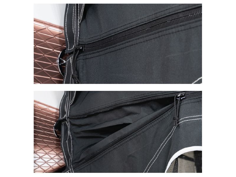 Het kan niet eenvoudiger; ritst de verstelbare inzetstukken in de zijwanden open- of dicht om de juiste hoogte te generen. Het Multi-Height-systeem maakt uw perfecte luifel of voorten vinden gemakkelijker dan ooit tevoren, maat S luifels aansluiten op voertuigen met een aansluithoogtebereik van 235 - 265 cm, maat M van 265 - 295 cm en maat L van 295 - 325 cm.