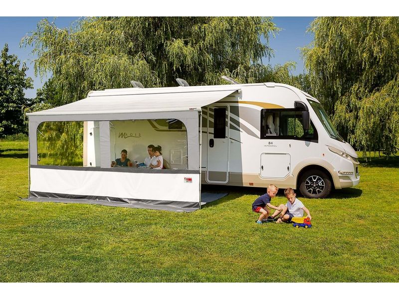 Beschrijving Fiamma voorwanden bieden gemakkelijke toegang tot het schaduwrijke gedeelte van de luifel en zorgen voor extra bescherming.