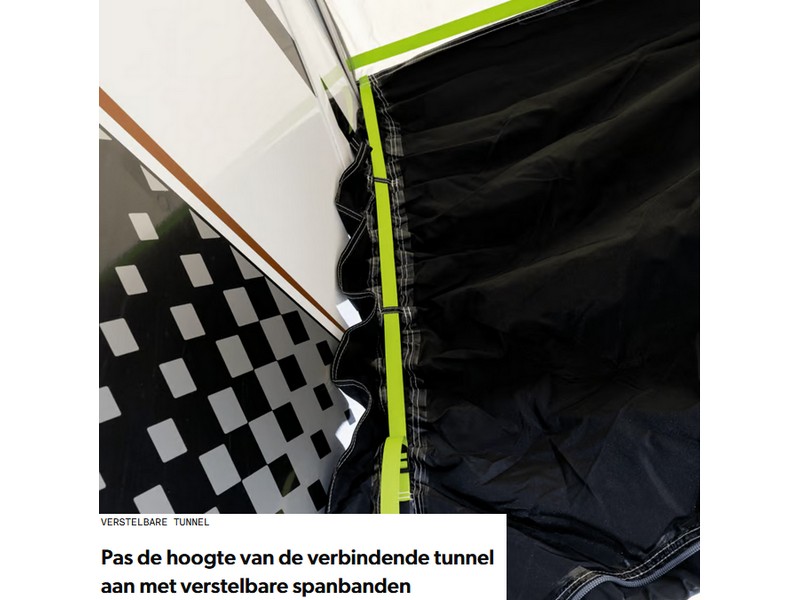 Leveringsomvang: 1 awning; 1 2.2L pump; 3 6m connection straps; 1 peg pack; 1 manual; 1 carry bag