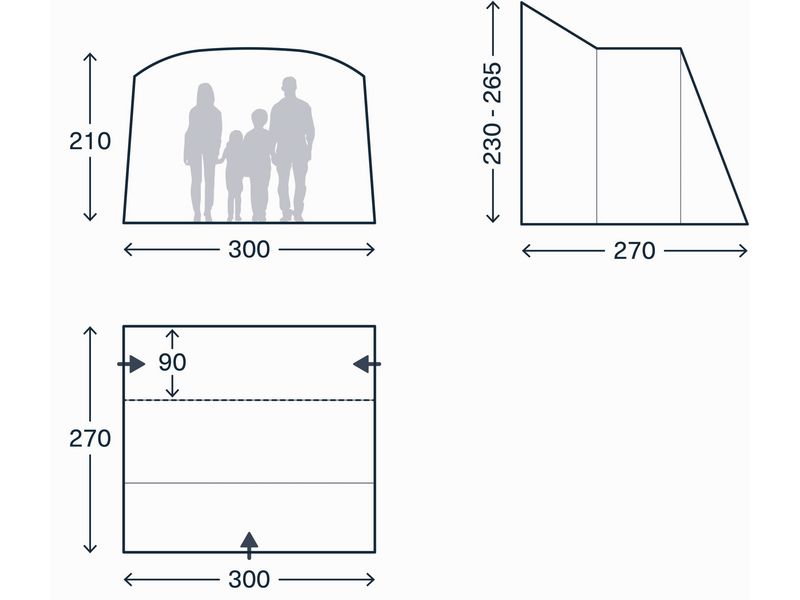 WIDTH 300 LENGTH 180+90 HEIGHT 210 (CM)