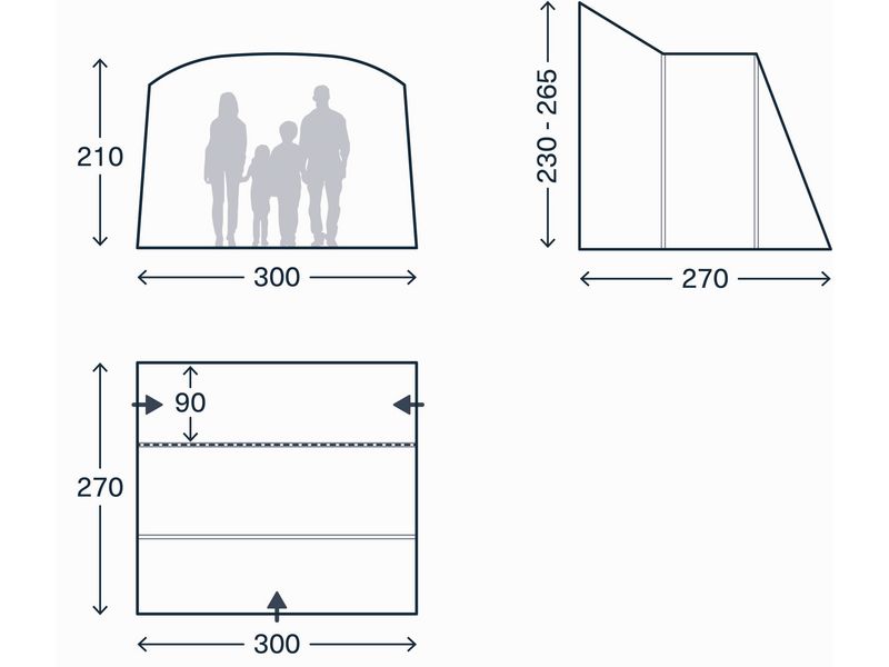Gemaakt voor diegenen die de zonsondergang achterna jagen, ook buiten de camping. Verkrijgbaar in middelhoge uitvoering, met opblaasbare buizen en duurzaam 150D polyesterdoek, is hij snel op te zetten en klaar voor gebruik. Ontworpen voor campers en bestelbusjes, inclusief een ingenaaid grondzeil en snel op te zetten spanbanden.