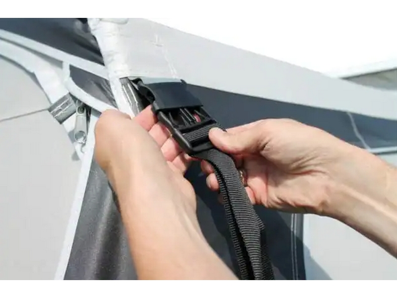 Niets is zo veranderlijk als het weer op de camping. Een onverwachte windvlaag of een zomerse storm kan je kampeerplezier flink verstoren. Deze handige set van 3 stormbanden is de oplossing om je Reda voortent, voortentluifel of caravanluifel extra te zekeren tegen harde wind en slecht weer.