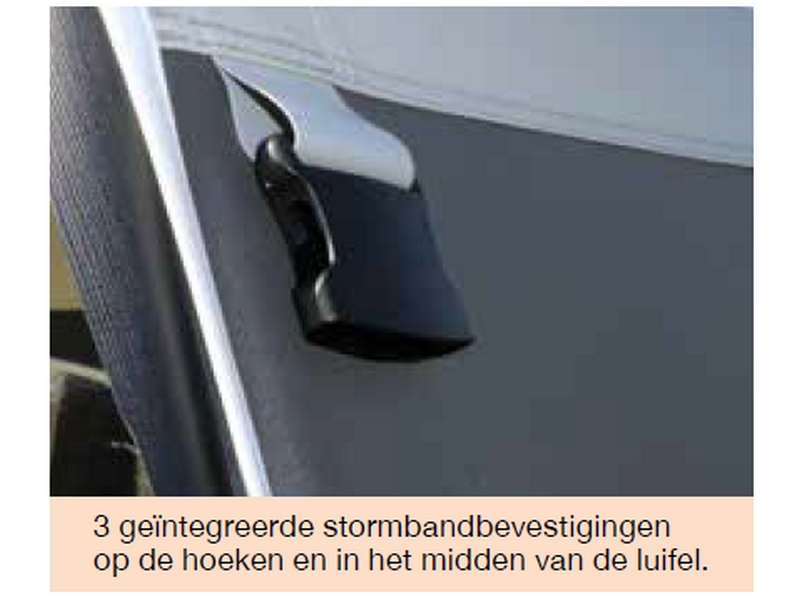 Stormbandbevestigingspunten: Drie geïntegreerde punten voor extra stabiliteit bij storm.