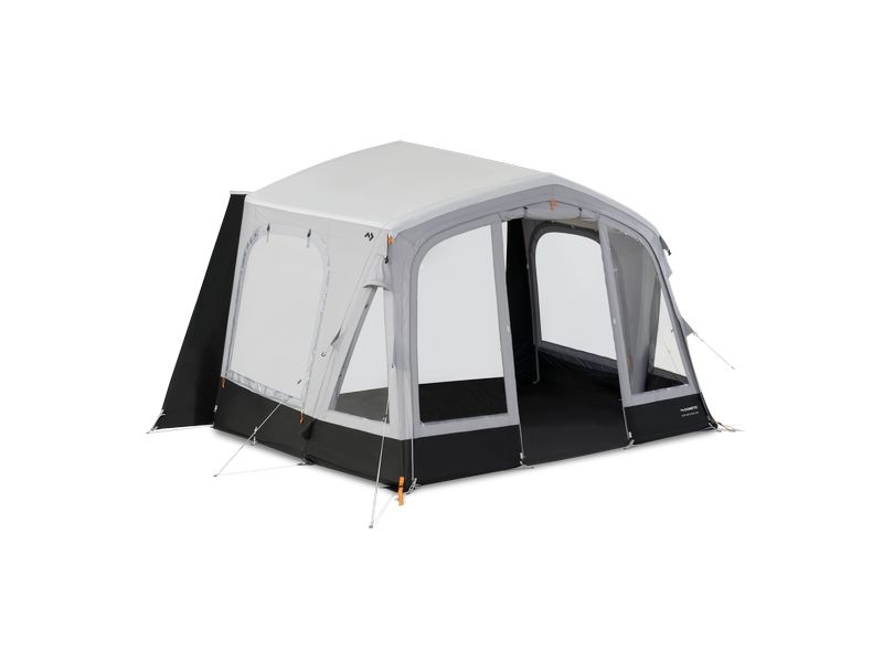 De achterzijde van de luifel heeft een extra opblaasbare buis die het dak van de voortent verhoogd.