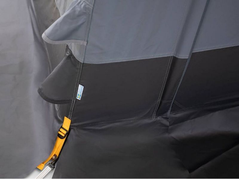 De Winter AIR PVC-voortent is ontworpen voor campers en caravans en is tegen alle weersomstandigheden bestand. Hij is gemaakt van duurzaam Weathershield™ PVC en is standaard uitgerust met praktische functies zoals een dubbele modderwand, stormbanden en heavy duty-haringen. Handige details zoals een oprolbare voordeur voor eenvoudige toegang en extra grote ritstrekkers die geschikt zijn voor handschoenen, zorgen voor extra gebruiksgemak en functionaliteit, wat ze ideaal maakt voor avonturen buiten het seizoen.