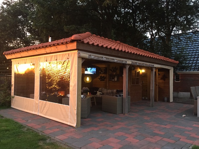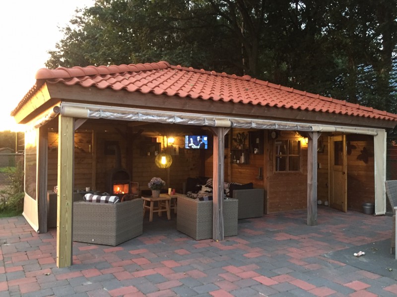 Voor deze prachtige vrijstaande houten overkapping hebben we een complete ombouw gemaakt.