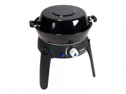 Beschrijving Deze draagbare, veelzijdige gasbarbecue weegt minder dan 4 kg en heeft maar liefst vier verschillende kookoppervlakken; een brander met pandrager, een BBQ rooster, een bakplaat en een deksel (ook als soeppan te gebruiken).