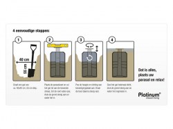 Beschrijving Deze unieke ingraaf parasolvoet kan eenvoudig geplaatst worden, zonder beton. U hoeft alleen maar een gat te graven, de voet te plaatsen, het gat te vullen met zand en de voet is klaar voor gebruik!