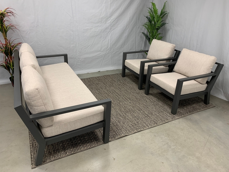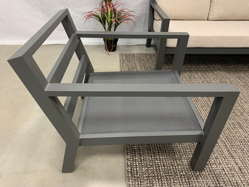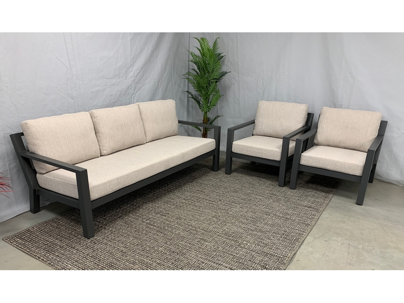 De 3-delige Brooks sofa lounge set is gemaakt van een aluminium frame. De rugleuning is bekleed met aluminium latten. De zittingen zijn uitgevoerd in textileen. Deze combinatie zorgt voor een perfect zittende set. De set wordt geleverd inclusief zit- en rug kussens. Deze sofa-lounge-set bestaat uit twee 2 stoelen en een 3 zits bank.