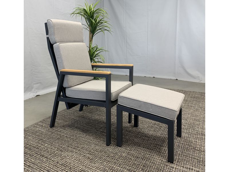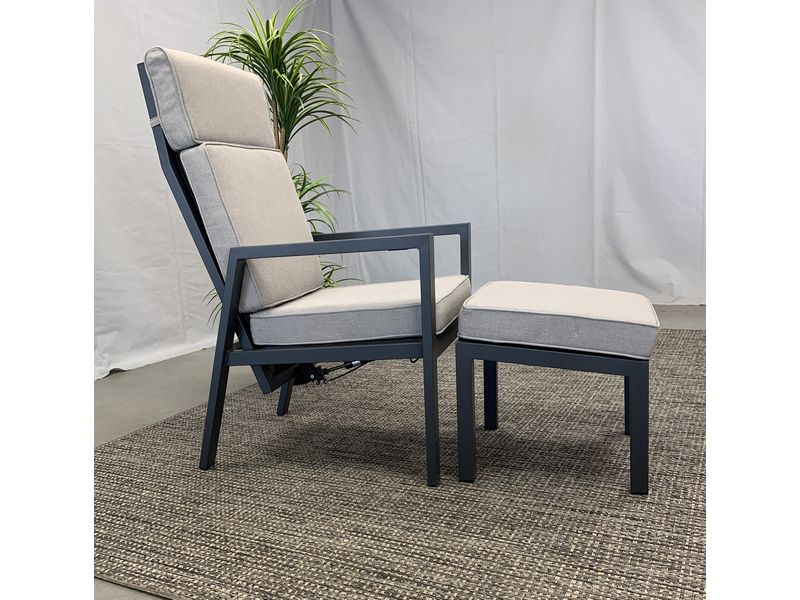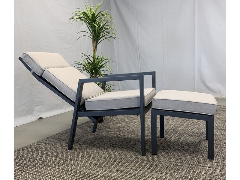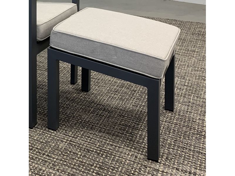 Een prachtige voetenbank in aluminium. Het frame is van antraciet aluminum, met daartussen is het kunstsof textilene materiaal. Het voetenbank is zeer duurzaam, onderhoudsvrij en makkelijk schoon te houden. Het dikke kussen geeft een perfect comfort, is gemaakt van een natuurlijk aanvoelend kunststof materiaal. Het kussen is duurzaam, vuil- en waterafstotend, en kleur echt.