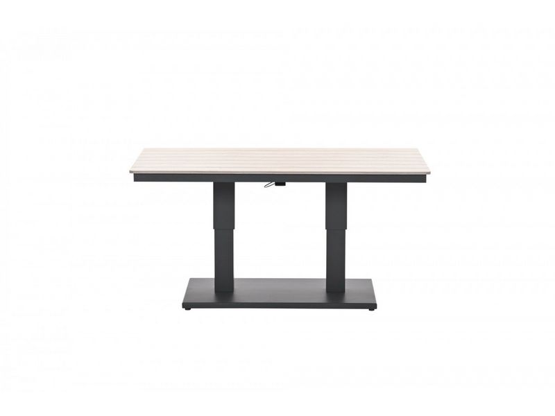 Naam: Cyprus tafel - in hoogte verstelbaar - 150x87 cm - hoogte 52-75 cm - carbon black - light teak Vironwood