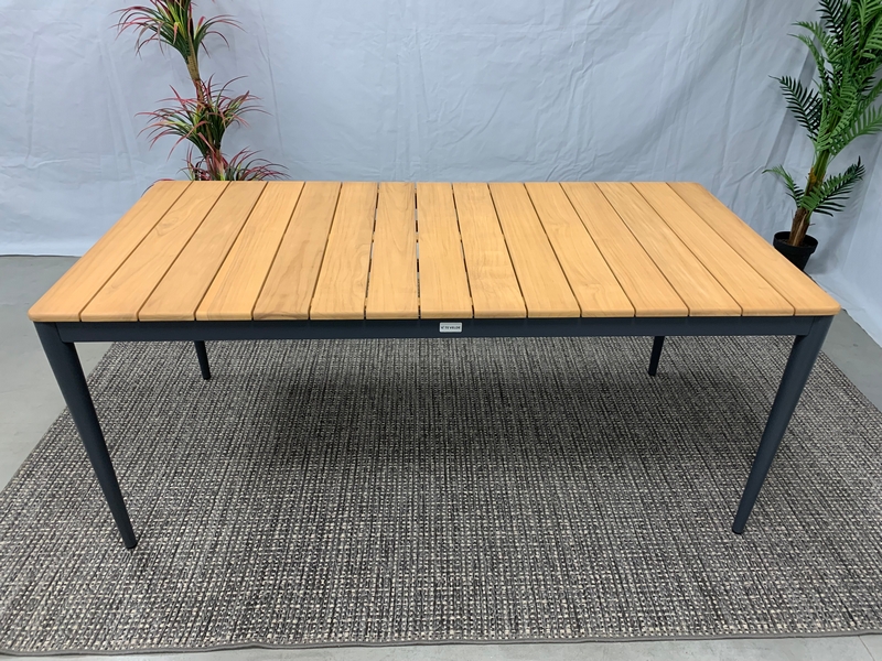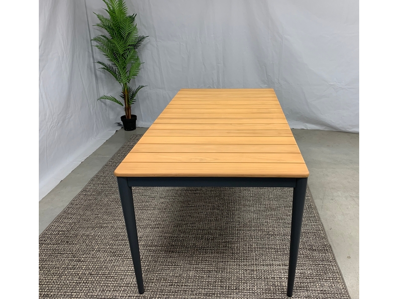 De Sandro teak-tuintafel heeft een Teak hout tafelblad en een aluminium frame dat een antraciet coating heeft. De tafel is 100 cm. breed, 2,2 meter lang en 0,75 meter hoog.