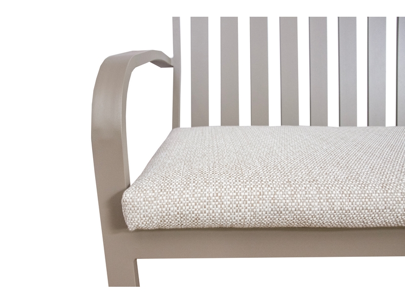 De Milan tuinbank van is de ideale keuze voor wie op zoek is naar zowel stijl als comfort in de tuin. Het frame van de bank is gemaakt van gepoedercoat aluminium, wat zorgt voor een robuuste en lichte structuur. Aluminium is van nature roestbestendig, wat de bank perfect maakt voor buitengebruik, ongeacht het weer. Het taupe frame geeft de bank een elegante en tijdloze uitstraling, die naadloos past in allerlei tuinsettings. Geleverd inclusief zitkussen.