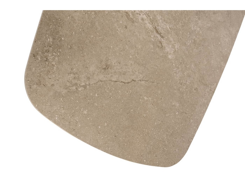 Het strakke kruispoot onderstel geeft deze tafel een eigentijdse en moderne uitstraling. Door het praktische kruispoot onderstel staan de stoelen vrij aan tafel zonder enige hinder van een tafelpoot. Het tafelblad van geprint keramiek bootst de luxe uitstraling van natuursteen na, terwijl het onderhoudsvriendelijk