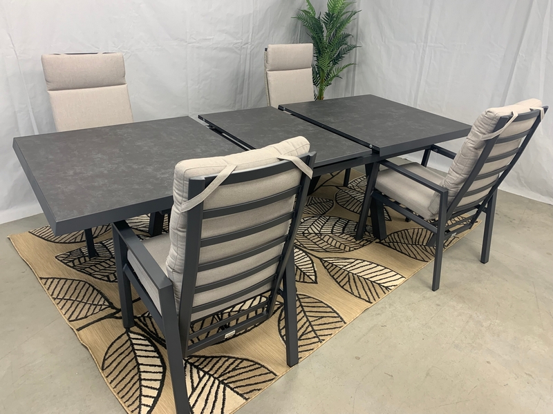 De Monaco uitschuifbare tuintafel 200-260, is een onderhoudsvrije rechthoekige tuintafel. Het frame is van aluminium, en het blad is van keramiek, in de kleur dark grey. Keramiek is een onderhouds vrij materiaal wat niet vervormd en ook niet verkleurd. Keramiek heeft een lange levensduur en is tijdens deze lange levensduur niet aan verandering onderhevig.