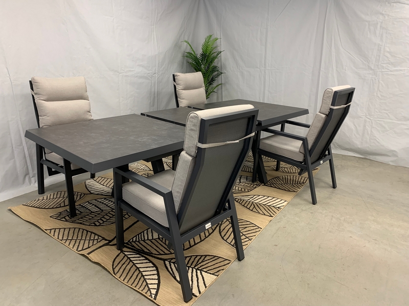 De Monaco uitschuifbare tuintafel 200-260, is een onderhoudsvrije rechthoekige tuintafel. Het frame is van aluminium, en het blad is van keramiek, in de kleur dark grey. Keramiek is een onderhouds vrij materiaal wat niet vervormd en ook niet verkleurd. Keramiek heeft een lange levensduur en is tijdens deze lange levensduur niet aan verandering onderhevig.