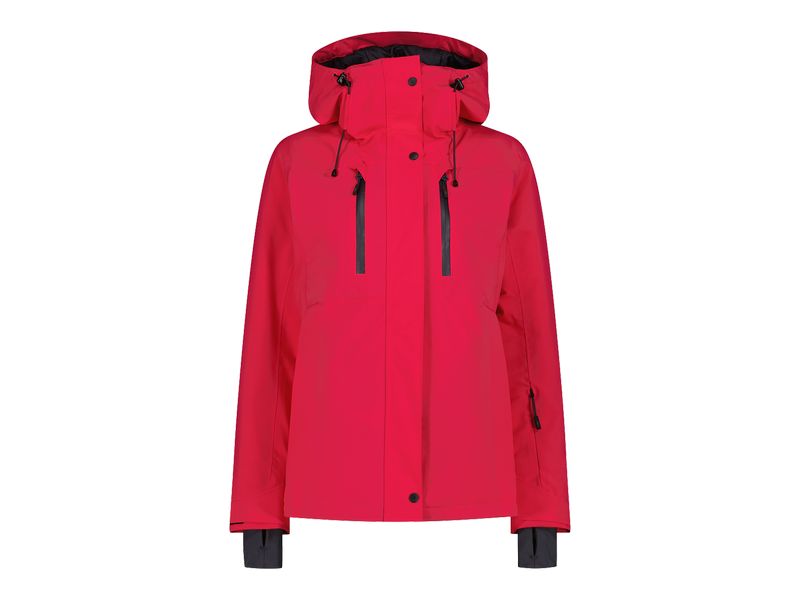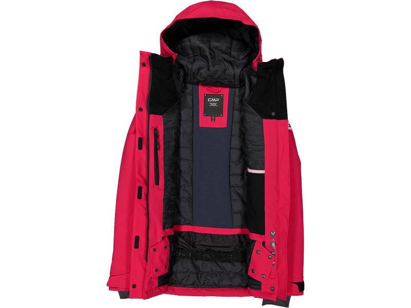 Beschrijving De dames ski jas 34W3926-C839 roze van CMP is een leuke warme jas voor op de piste of voor dagelijks gebruik. Deze jas heeft aan de voorzijde 4 afsluitbare zakken en heeft in de mouw een zakje voor een skipas. De jas heeft een vaste capuchon en een vaste sneeuwvanger. De CMP jas 34W3926 is waterdicht en heeft een waterkolom tot 10.000mm, de naden zijn getaped. De ClimaProtect technologie zorgt voor ademend vermogen en volledige bescherming tegen wind en regen.