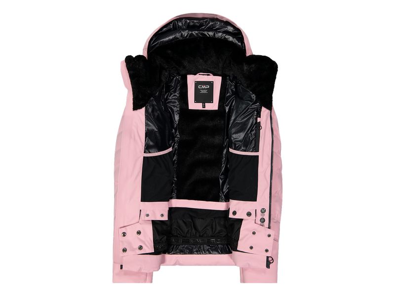 Beschrijving De dames ski jas 34W4406-B309 pink van CMP is een mooie jas gemaakt van heerlijk warm en soepel materiaal. Deze jas heeft aan de voorzijde 2 afsluitbare zakken en heeft in de mouw een zakje voor een skipas. De jas heeft een vaste capuchon en een vaste sneeuwvanger. De CMP jas 34W4406 is waterdicht en heeft een waterkolom tot 10.000mm. De ClimaProtect technologie zorgt voor ademend vermogen en volledige bescherming tegen wind en regen.