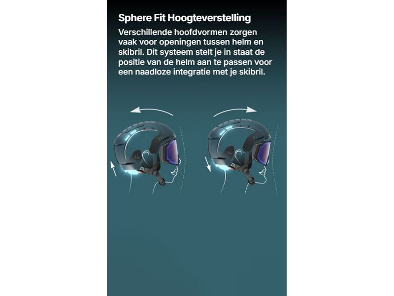 Het verbeterde Sphere Fit-systeem van HEAD is voorzien van een innovatieve hoogteverstelling, waardoor de helm perfect kan worden afgestemd op de individuele contouren van voorhoofd en neus. Dit zorgt voor een ideale pasvorm van de helm en naadloze integratie met een skibril.
