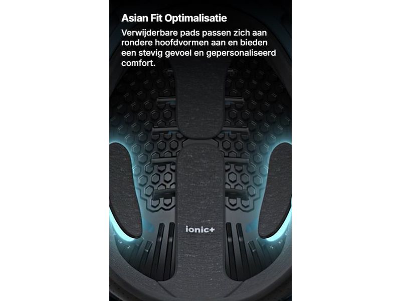 Verwijderbare pads passen zich aan rondere hoofdvormen aan en bieden een stevig gevoel en gepersonaliseerd comfort.