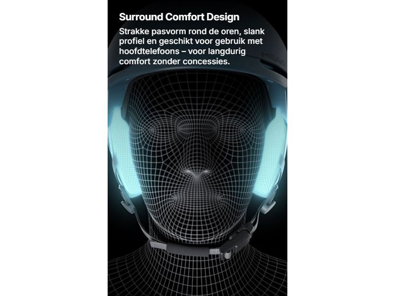 Het Surround Comfort Design breidt het gepatenteerde Sphere Fit-systeem uit voor een goede pasvorm, ook rond de oren. Dit ontwerp omsluit het hoofd stevig en comfortabel, waardoor de helm lager zit en visueel minder volume inneemt.